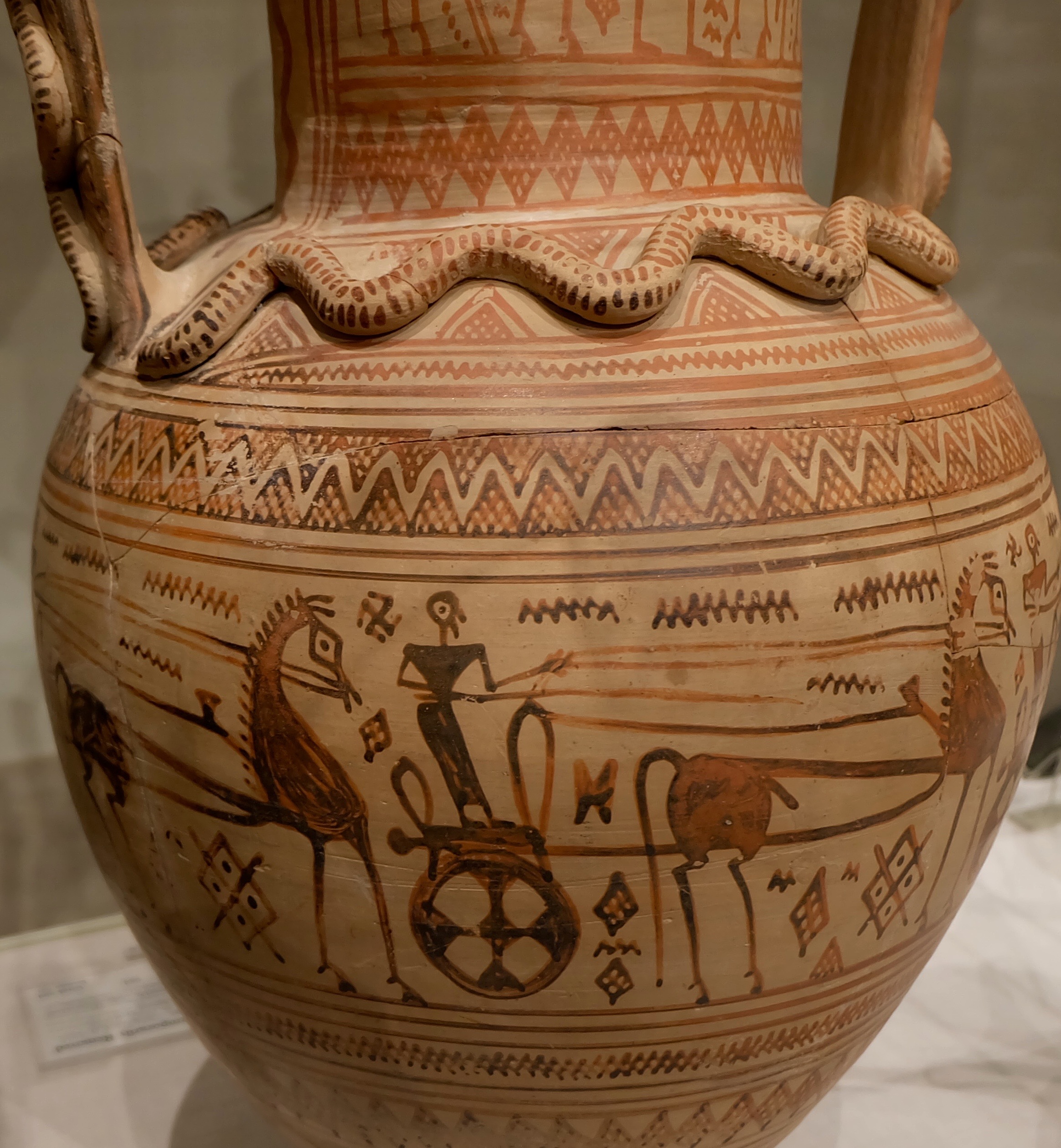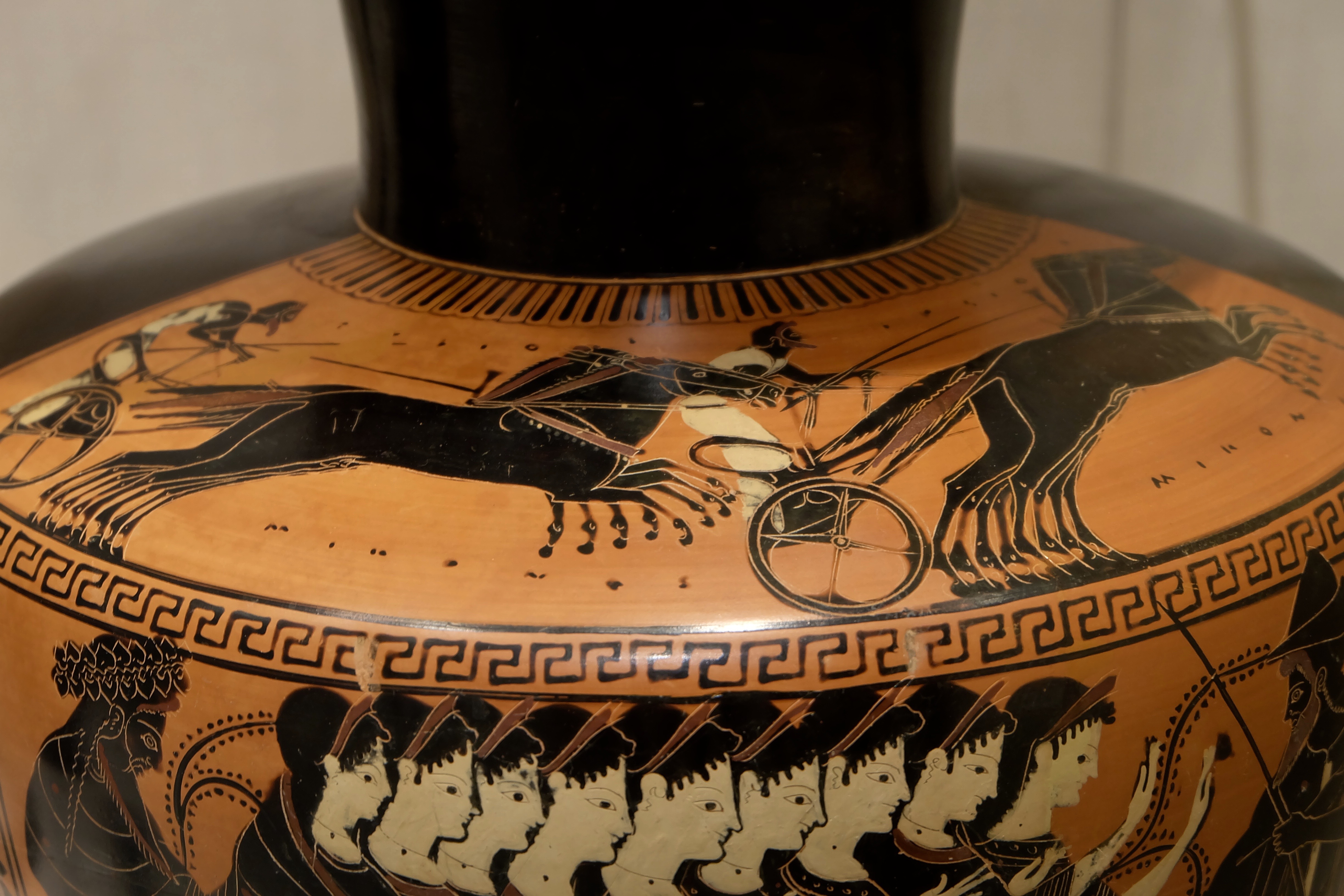 This gallery displays different means of transportation used by the Ancient Greeks: chariots, horses, ships. Some pictures also show other ways of traveling in myths: dolphins and rams. The photographs were taken in the Metropolitan Museum of Art in New York.