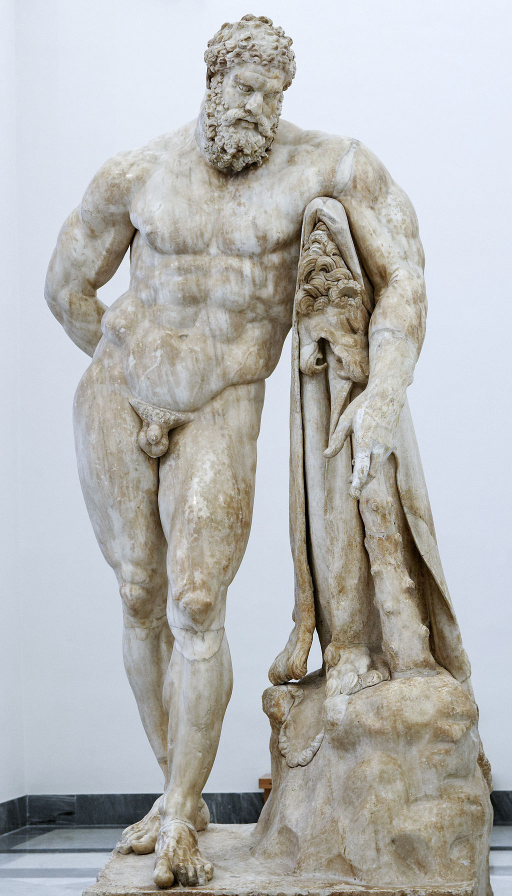 Farnese Hercules. c 216 CE based on an original of 4th century BCE; partially restored. Museo Archeologico Nazionale, Naples.
