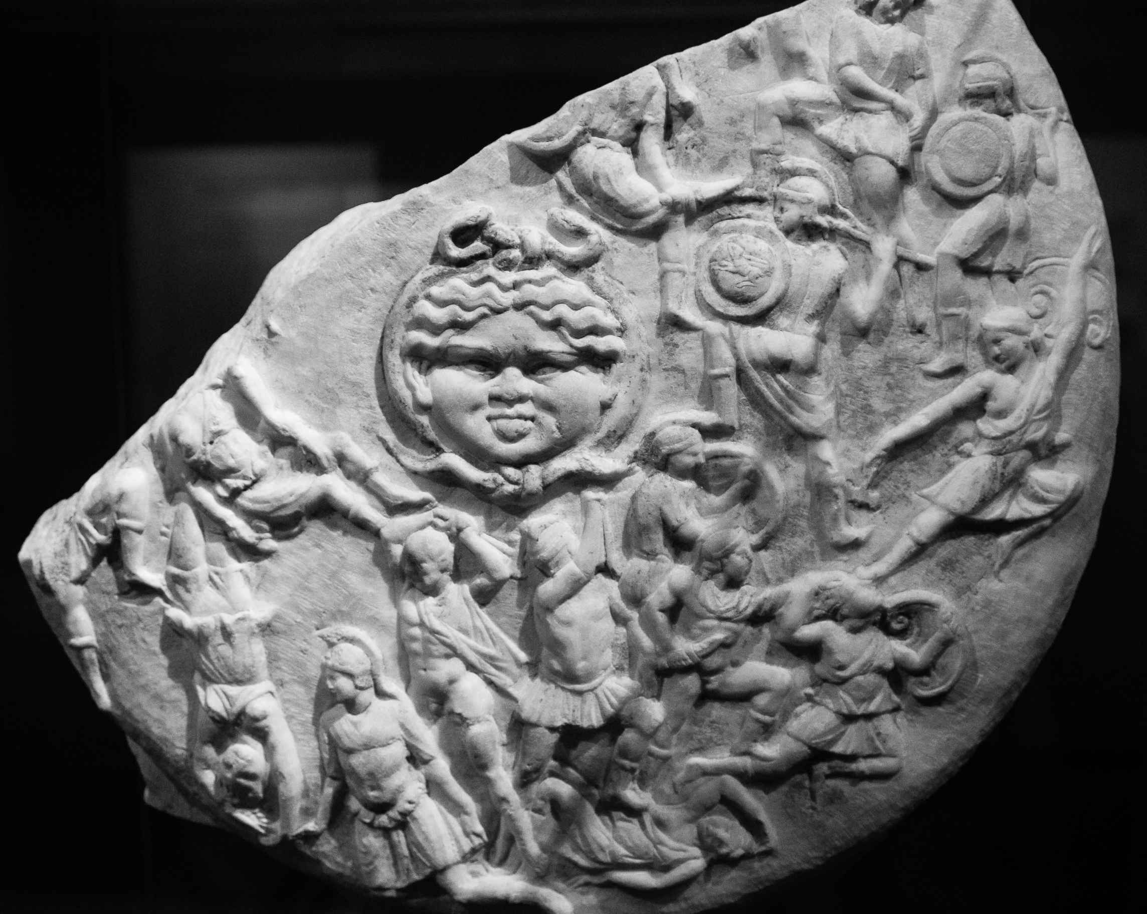 From the triangular pediments on either end of the long Duveen Gallery to the metopes arranged on each long side I witness familiar scenes. On the east pediment, which narrates the birth of Athena, the reclining figure of Dionysus with the imagined wine cup in hand, the waxing chariot of Helios to the left and the waning Selene horse on the right. Poseidon’s formidable torso and Athena’s bust on the west pediment are the highlights of their famous contest to be patron of Athens[4].
