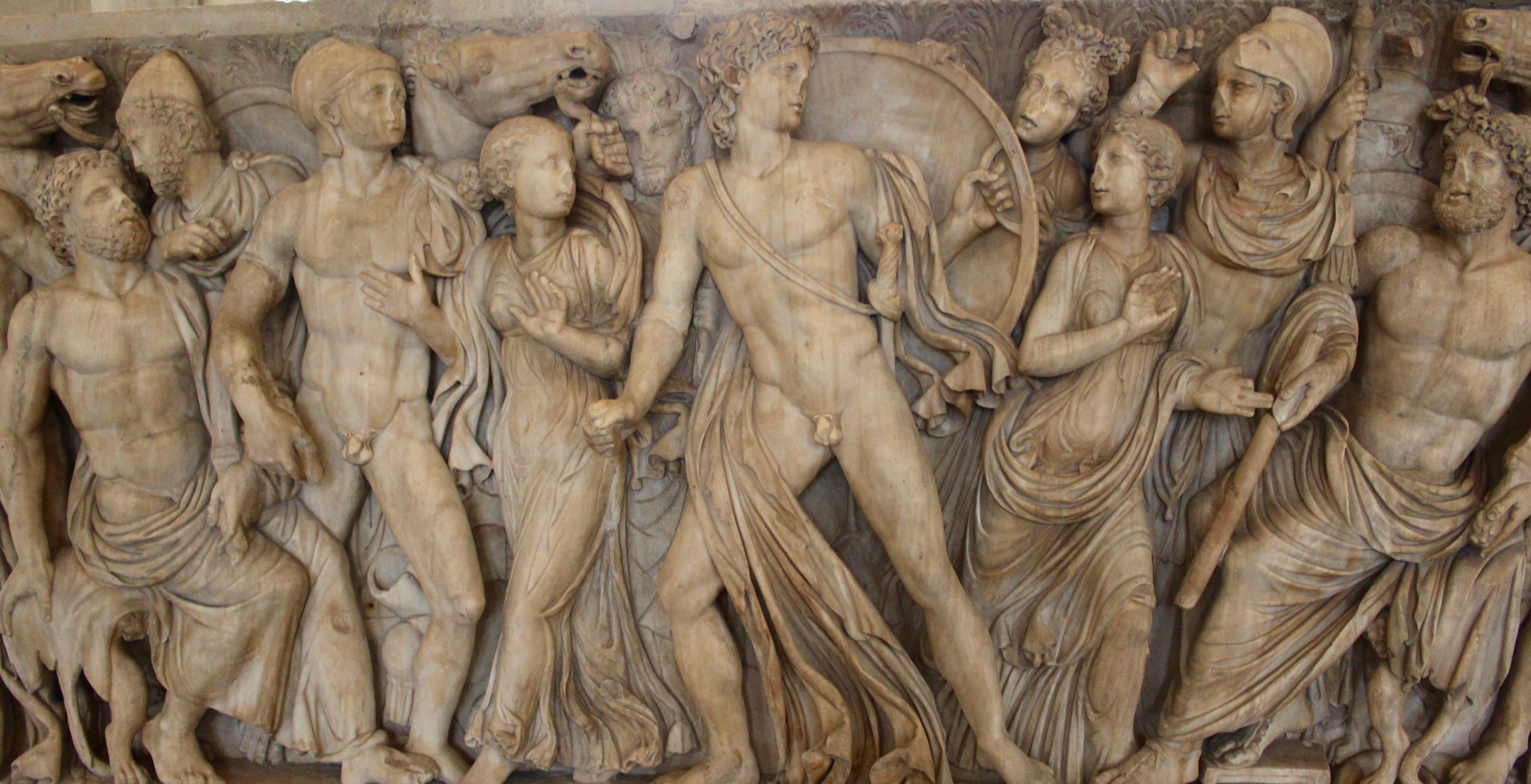 Achilles at the court of King Lycomedes, panel of an Attic sarcophagus (240 CE) Louvre.