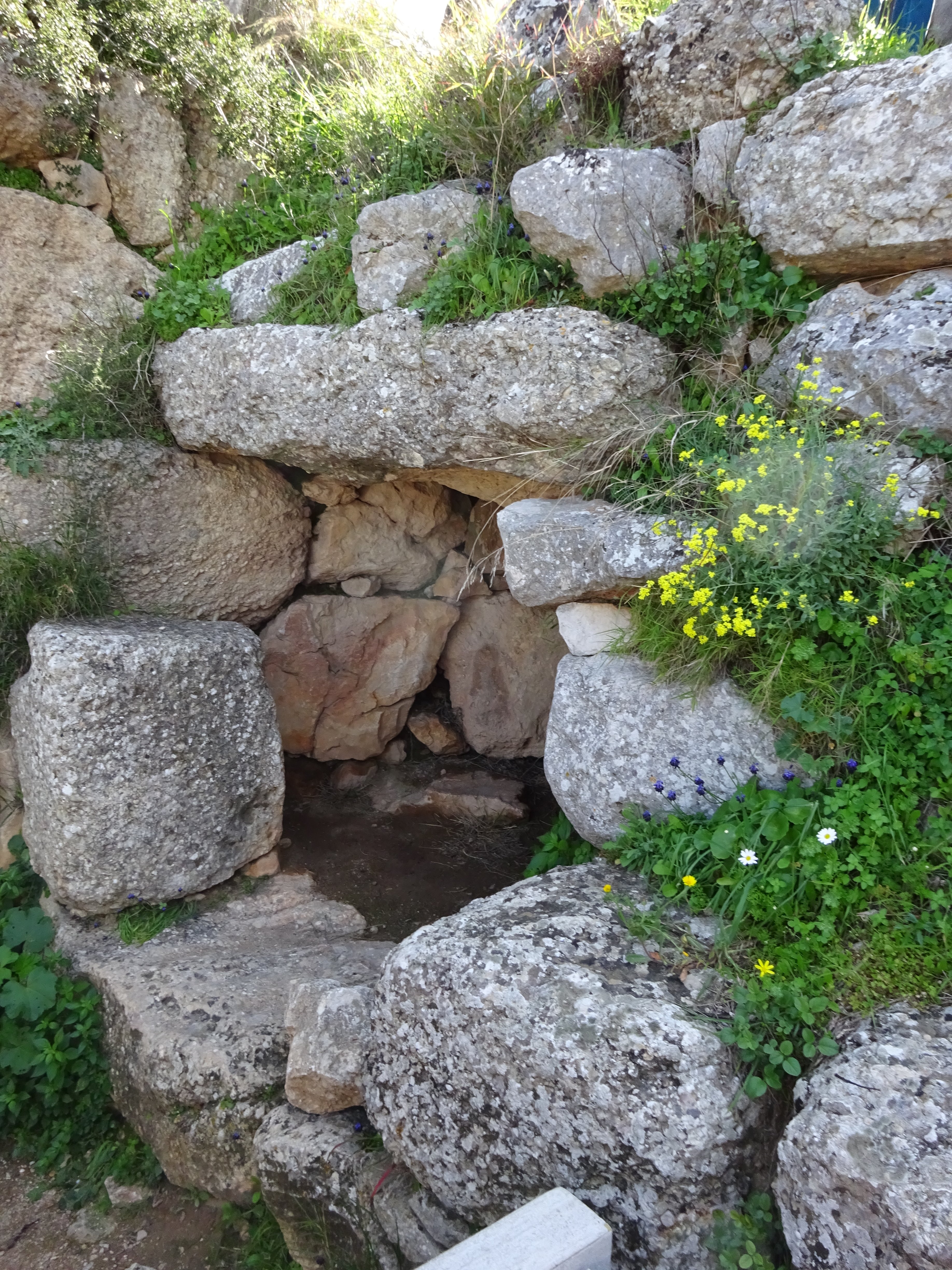 This first gallery includes the Hēraion which was the ancient Temple of Hera, to which Kleobis and Biton drew the ox-cart across the vast plain of Argos (Herodotus): I hadn’t easily imagined the scale; and there were olive trees, like those we read about in the Odyssey, and asphodels growing just like those where Achilles roams (Odyssey). The tholos “Treasury of Atreus” had bees buzzing around the entrance, no doubt trying to convey messages to us; and Mycenae was impressive in its landscape. In the Museum there were decorated bowls, and stylized votive offerings, the meaning of which is almost lost in time, but the loom weights for me again suggested Helen, Andromache, or Penelope in Homeric epic.