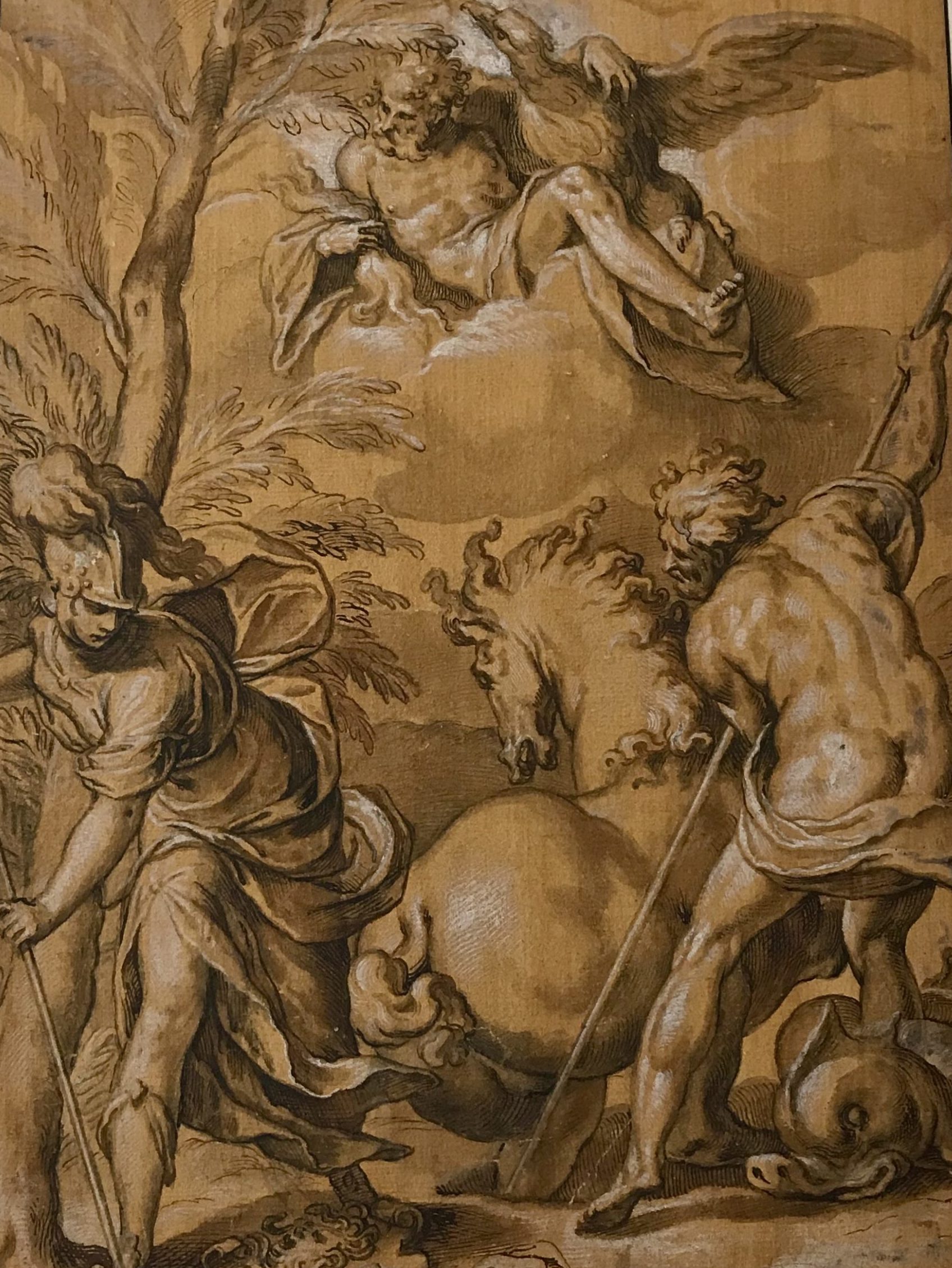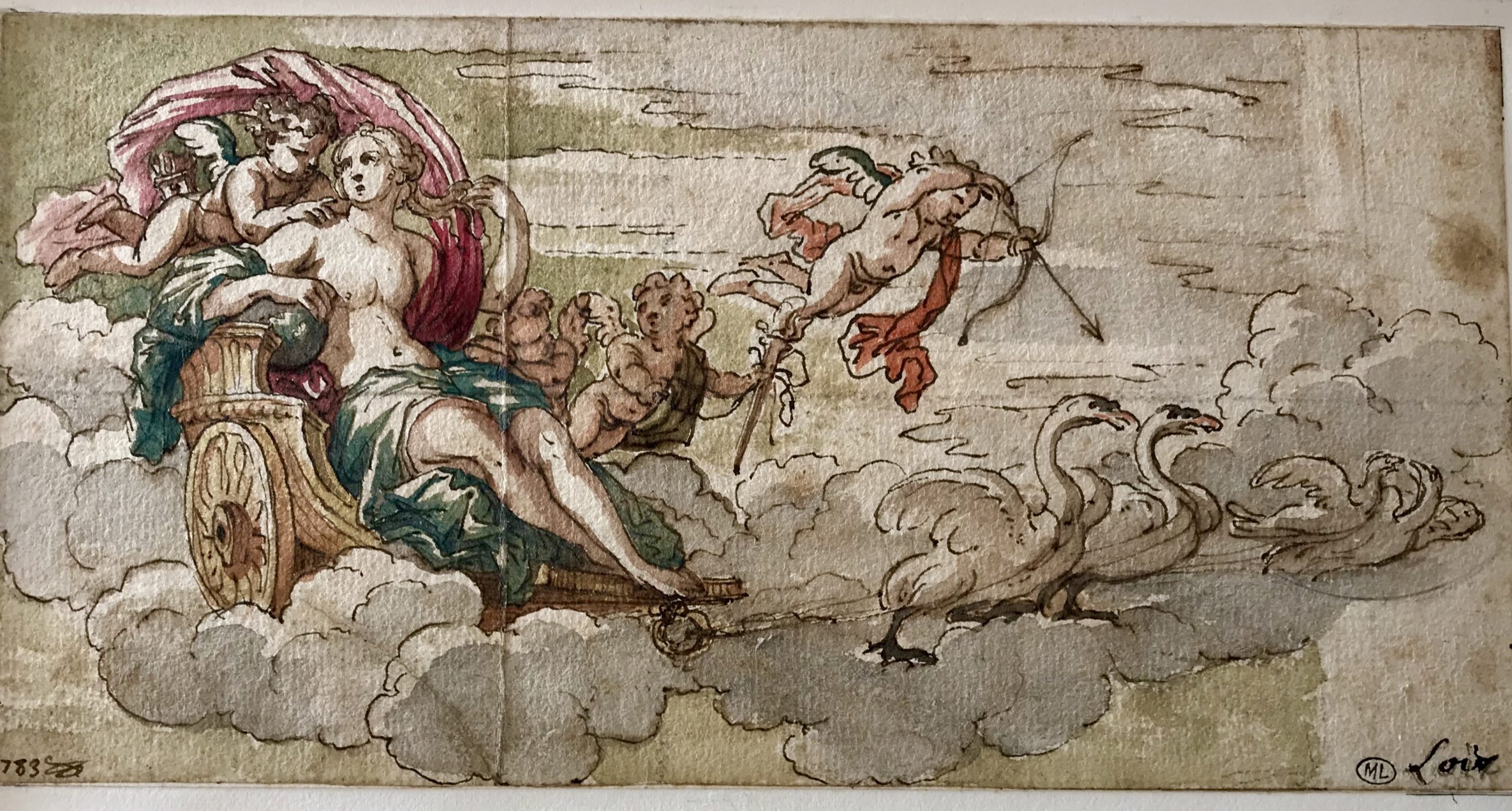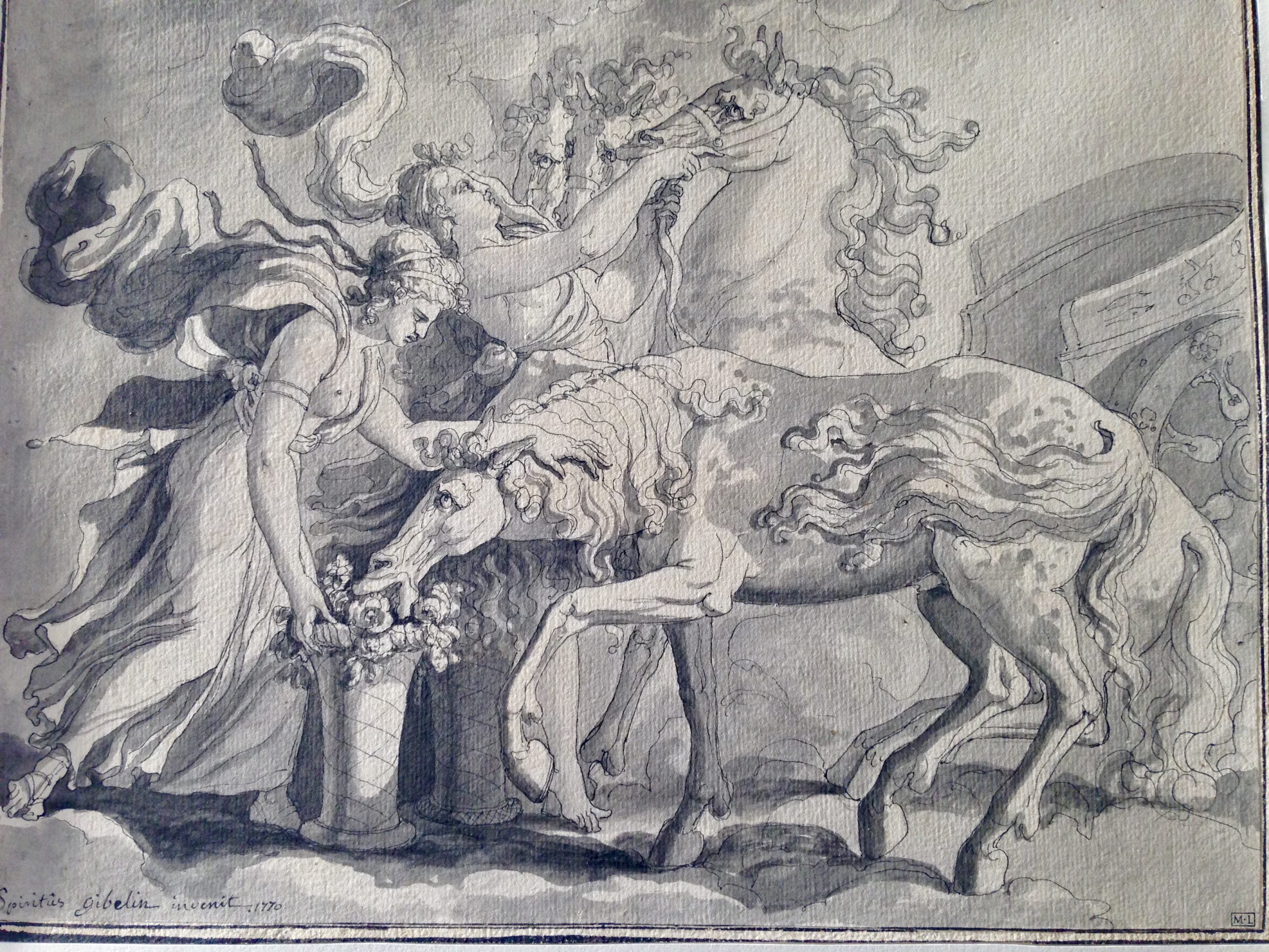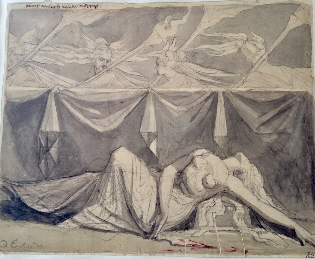 Then you are allowed to select 10 items . You write down the number of the inventory and the name of the artist for each item. Then an employee brings you a big folder where several drawings or paintings (mostly water-colors) of the same artist are stored. You have the one you selected in the folder, but you are also allowed to consult the others, if you want. Very carefully you take them out, one at a time, and then you just gasp at the beauty, and also because it’s so exciting to be physically holding and looking at a drawing or painting by Rubens or Corneille or David or Ingres or Moreau…..
