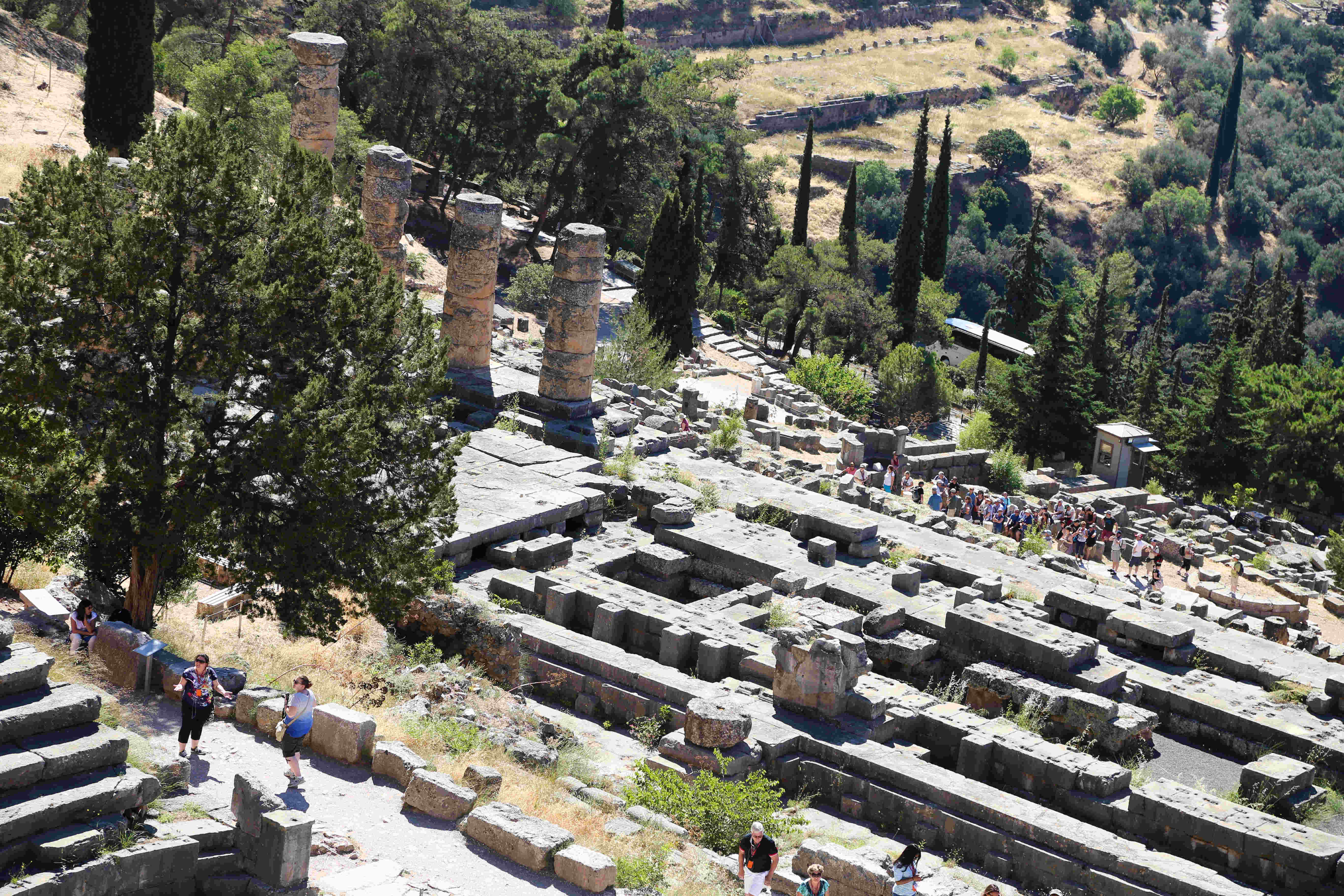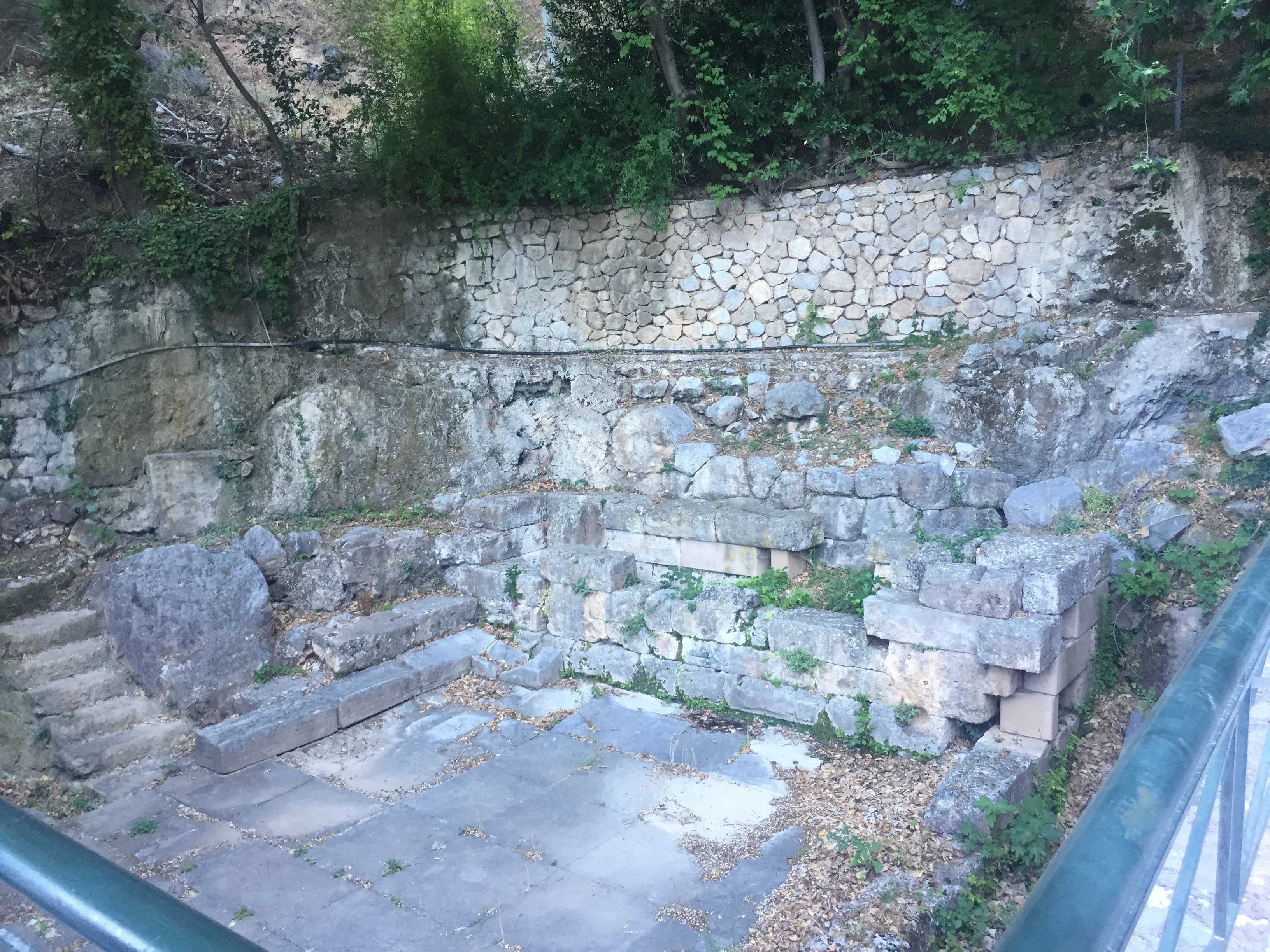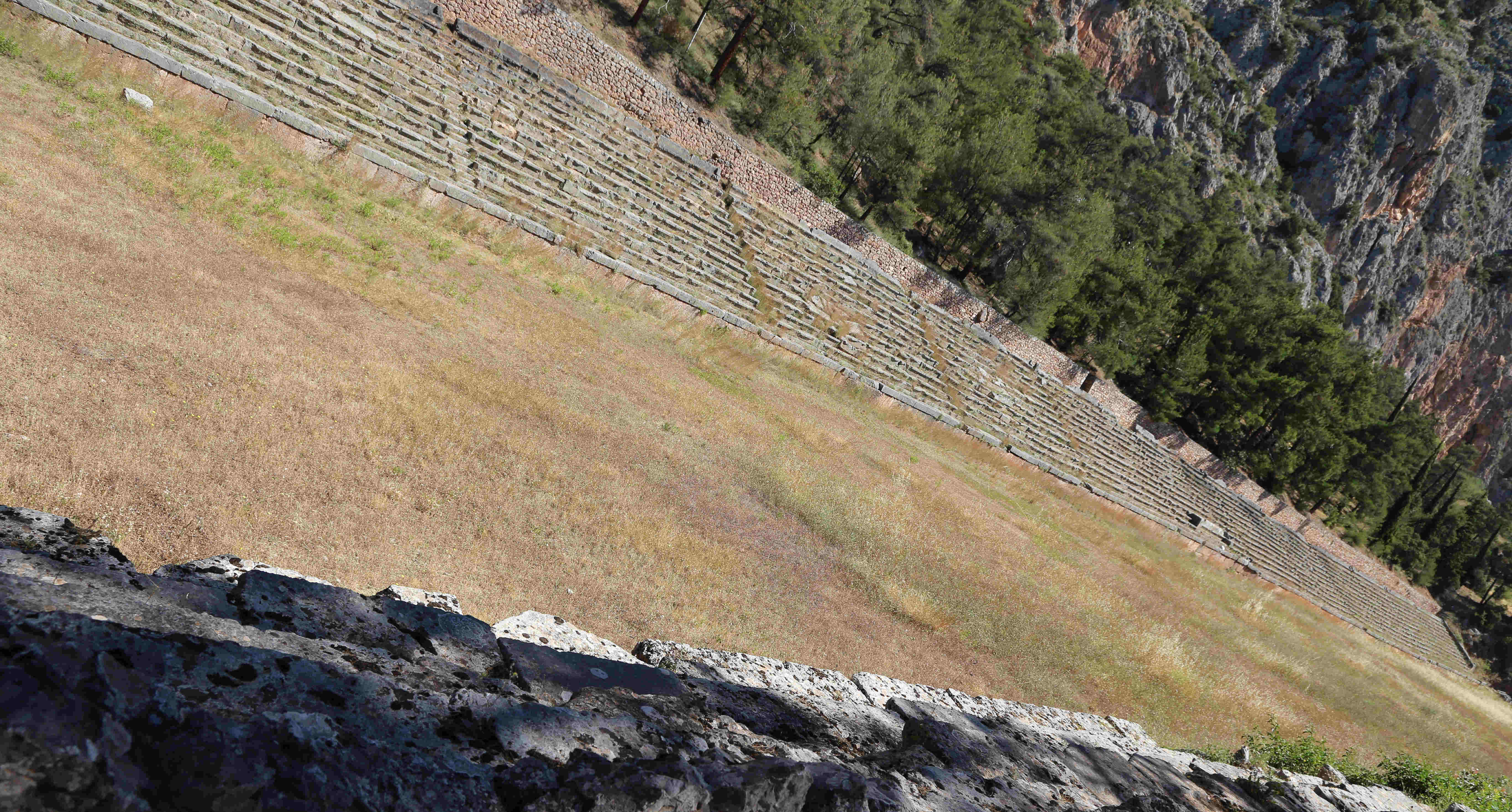 Delphi is a place where you feel that you are in sacred grounds. Our first stop at Delphi was the Spring of Castaliā where “pilgrims stopped to wash themselves and quench their thirst; it is also here that the Pythia and the priests cleansed themselves before the oracle-giving process.” [Wikipedia] From the entrance to the stadium at the top, the pan-Hellenic importance of Delphi showcases itself with dedications as temples or statues by different city-states of the ancient Greek world.