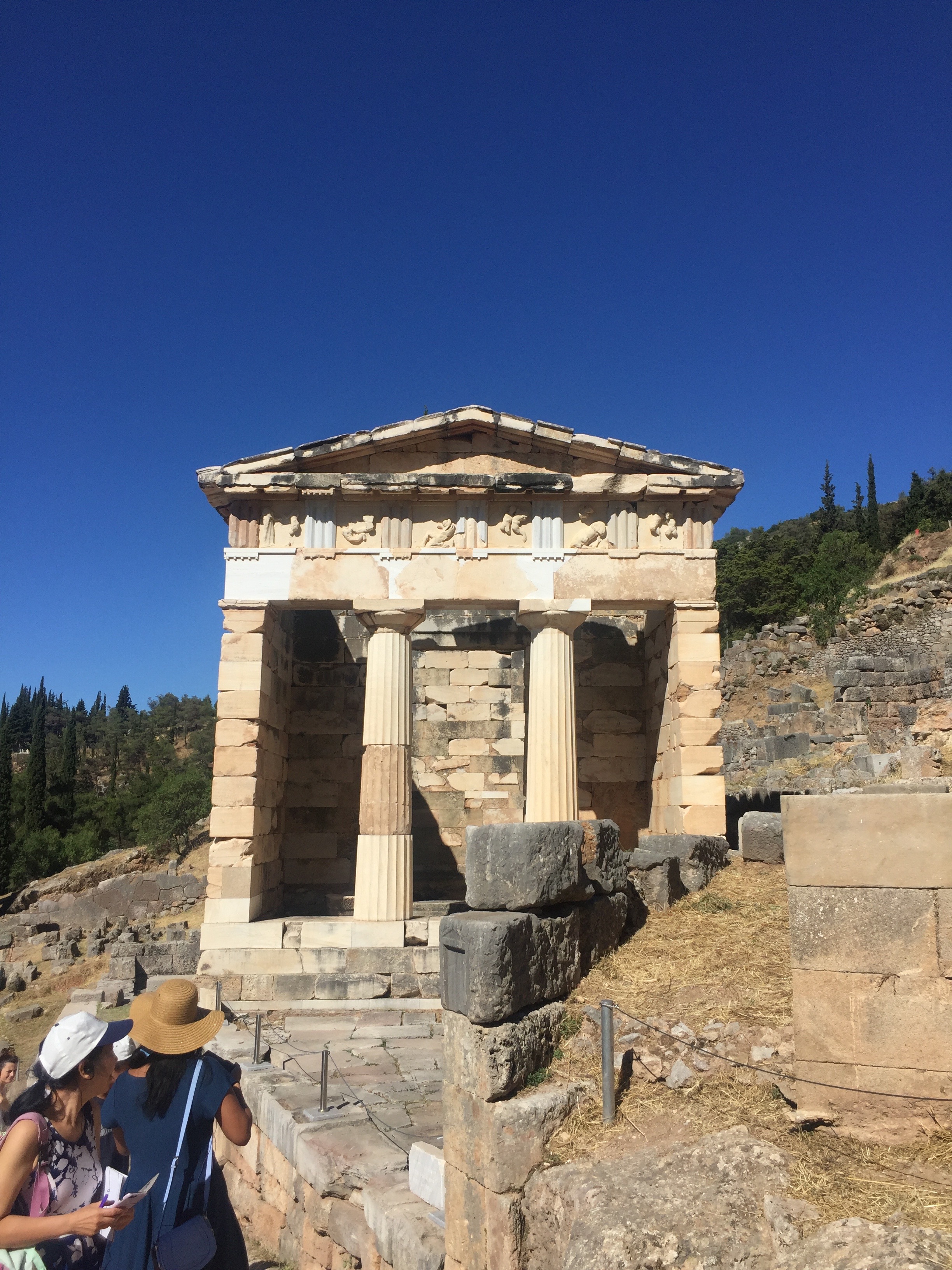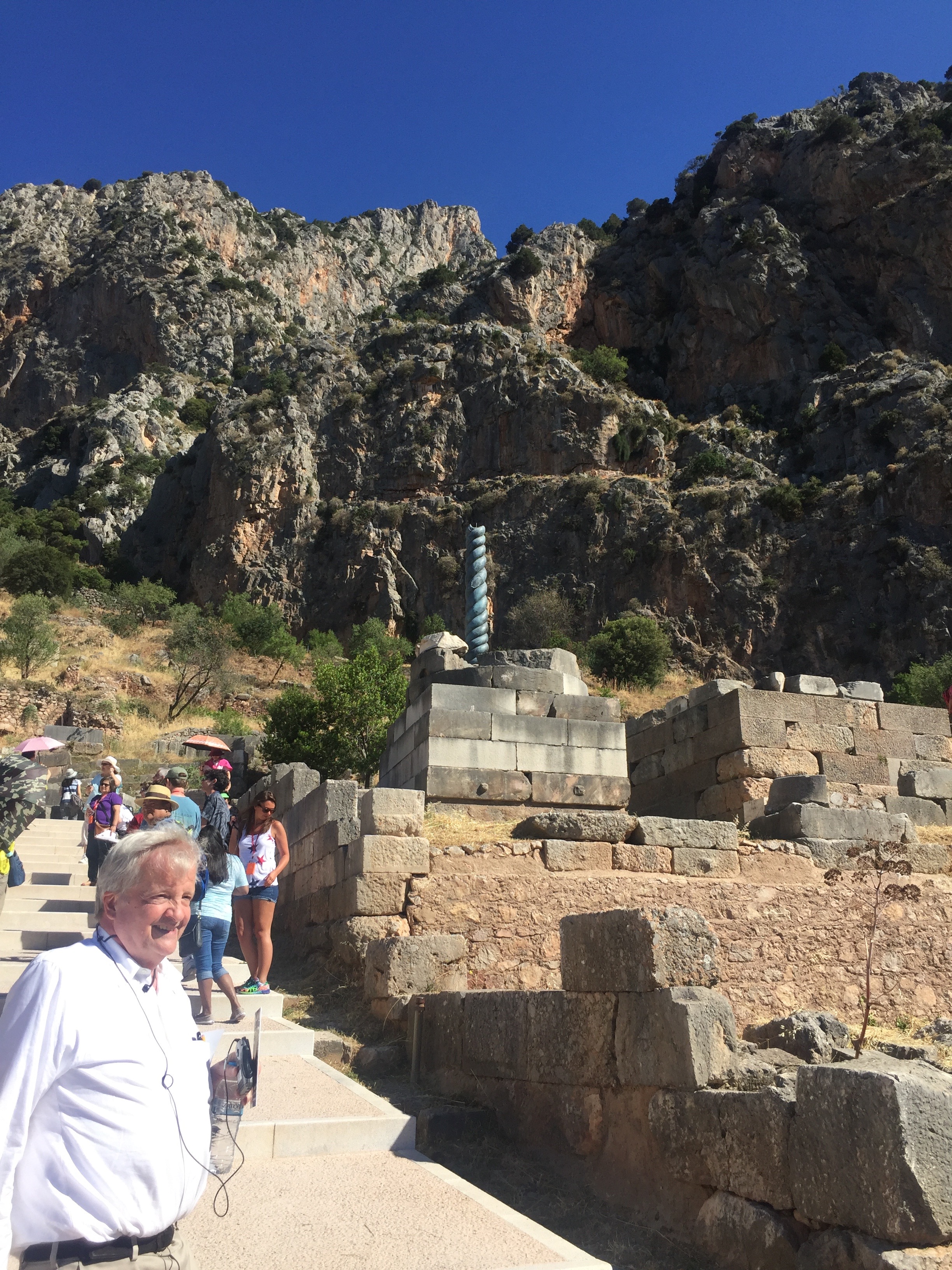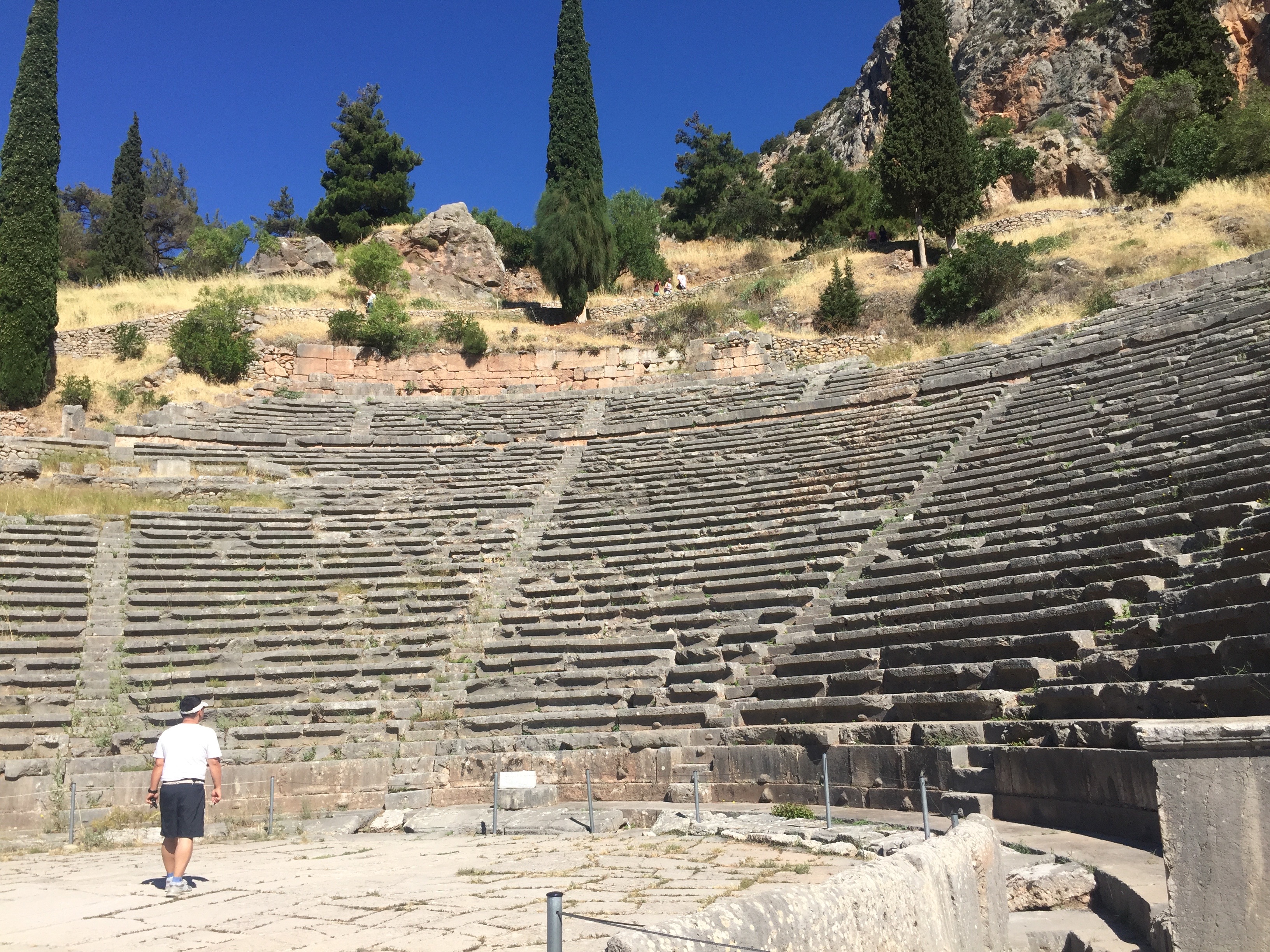 After leaving Nafplio, the travel-study group headed to Olympia, the ancient home of the Olympics. The stadium was the highlight of Olympia. Our next stop was Delphi. We stayed in Arachova which is situated in the western part of Boetia. Arachova is a famous ski resort, if you happen to visit Greece in winter. The car ride between Arachova and Delphi is about fifteen minutes.