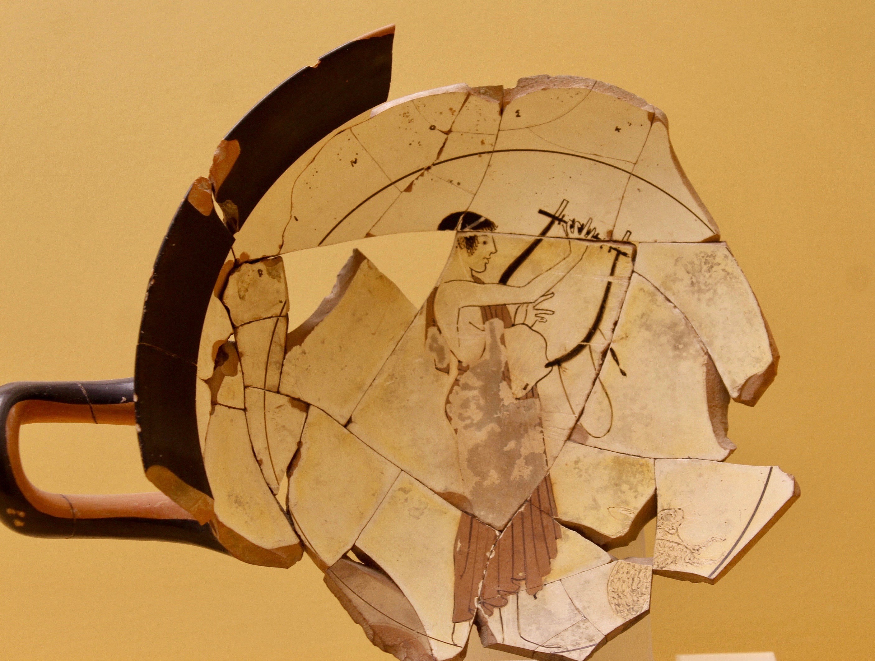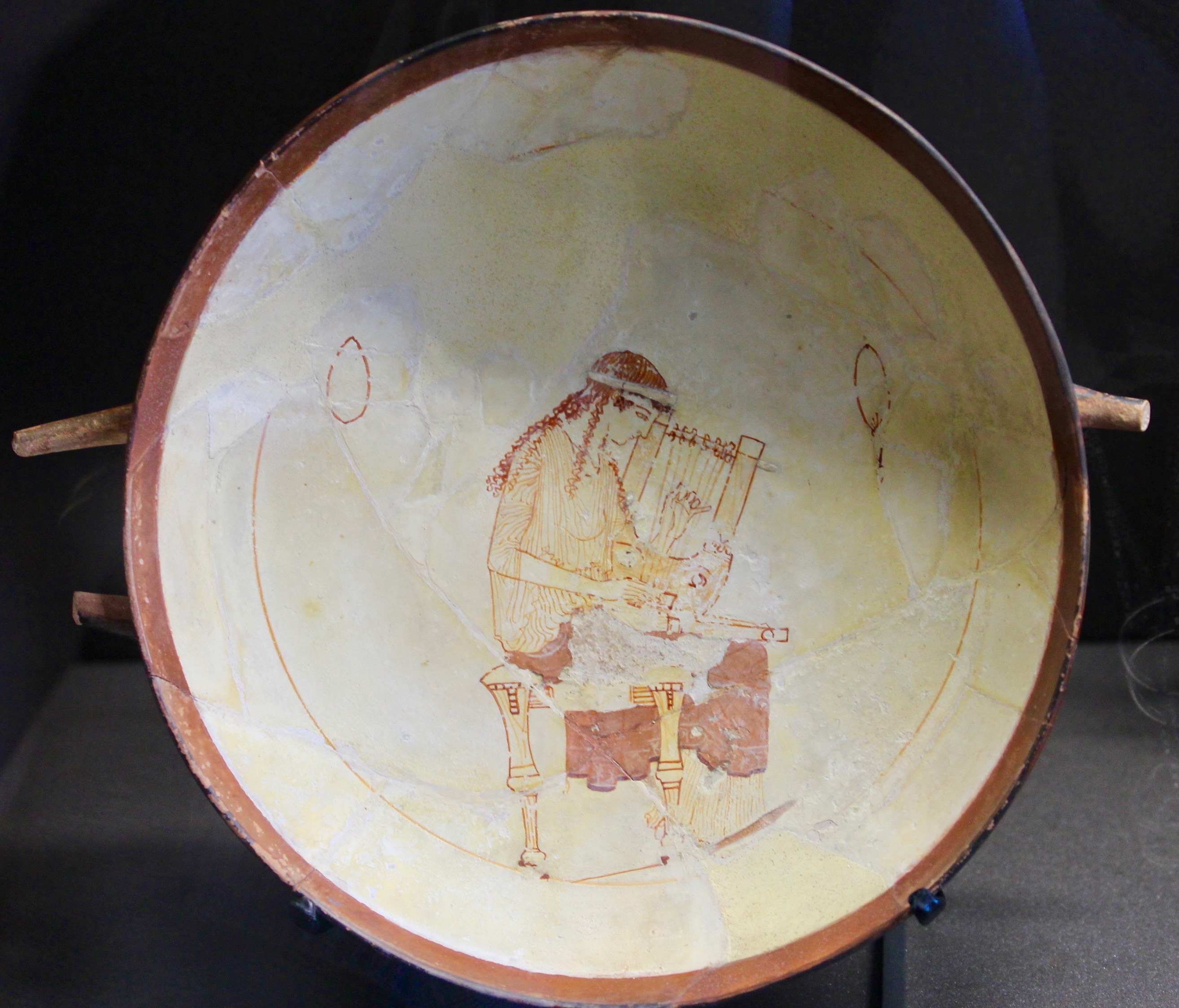 Fragmentary Kylix illustrating a Youth tuning the Lyre, c480 BCE, Agora Museum, Athens
