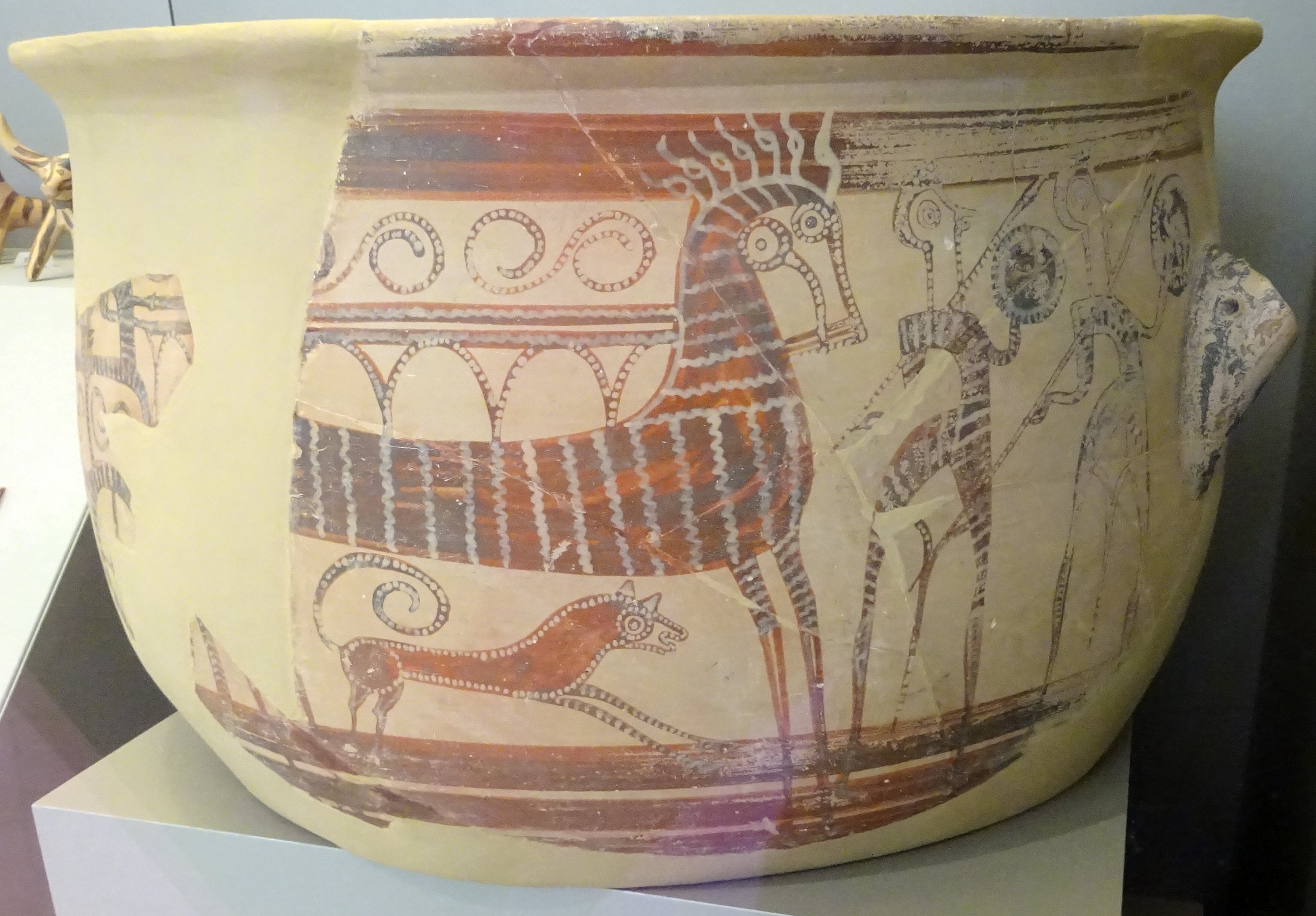 Fragment of large krater. Style of ‘painter of the shield-bearers’ of Tiryns workshop of pictorial pottery. Late 13th–early 12th centuries BCE. National Archaeological Museum, Athens