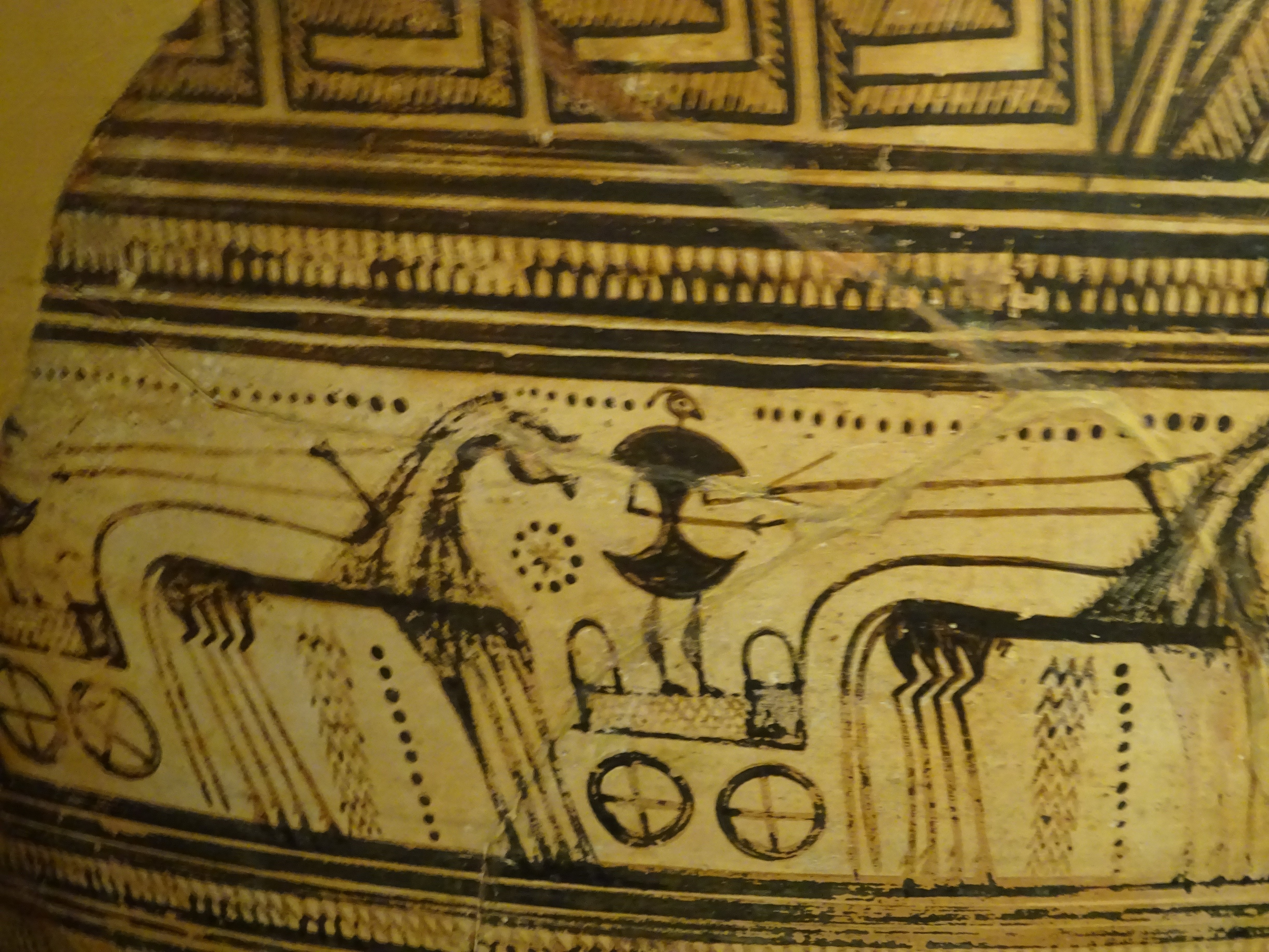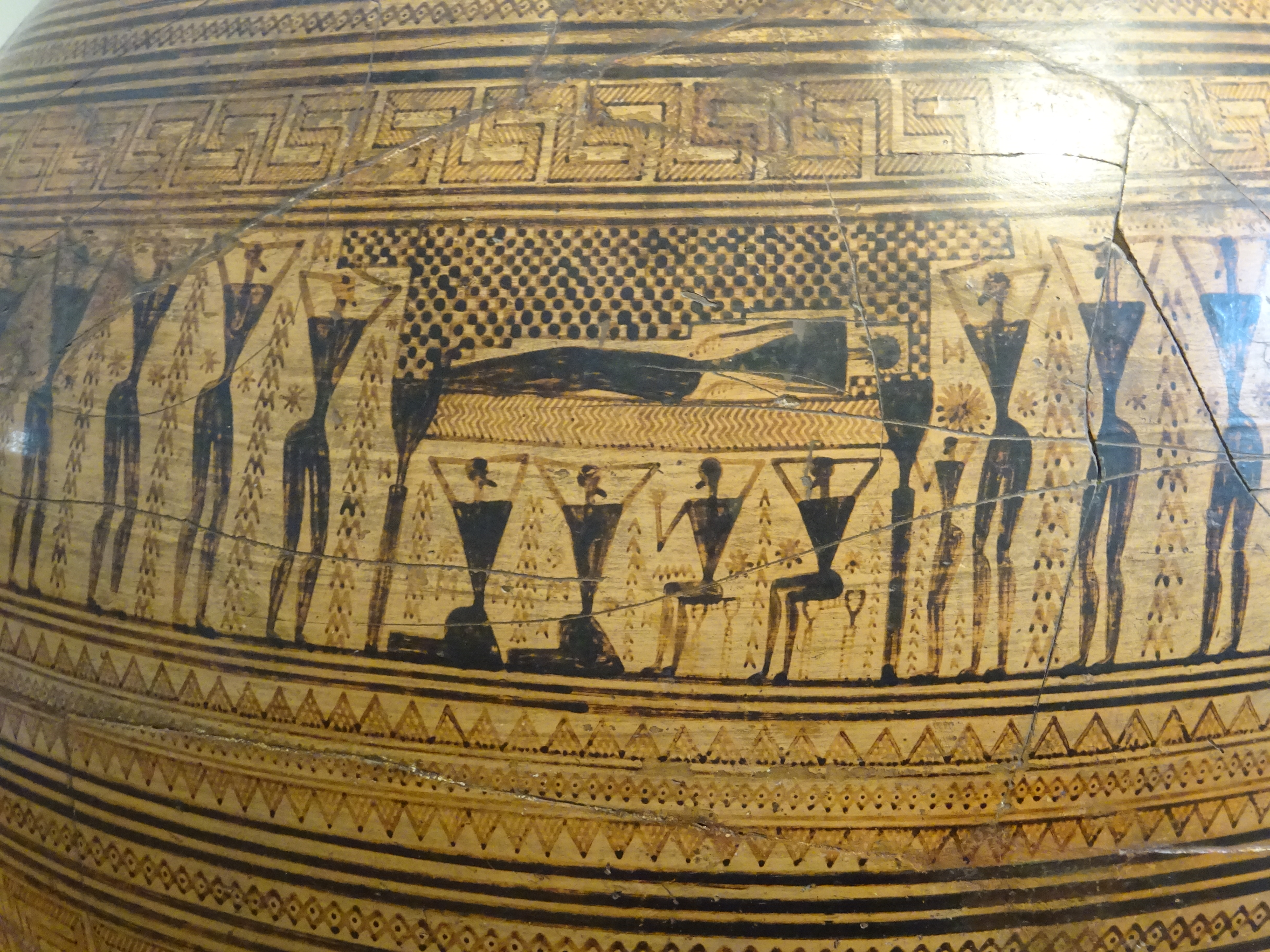 Closeup of funeral scene on Dipylon vase, National Archaeological Museum, Athens.