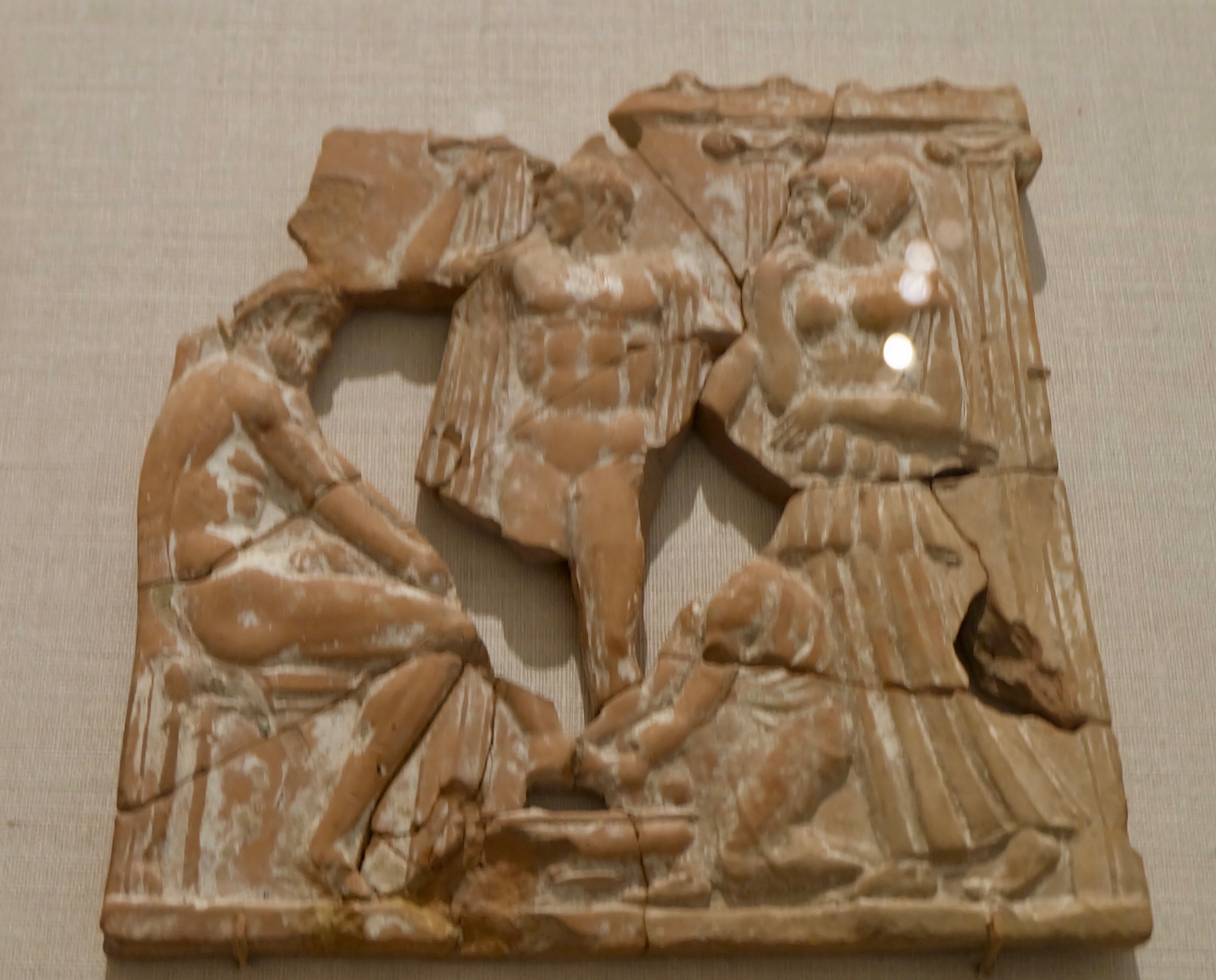 Terracotta Plaque showing Eurykleia washing Odysseus’s feet, c 450 BCE, Metropolitan Museum of Art, New York