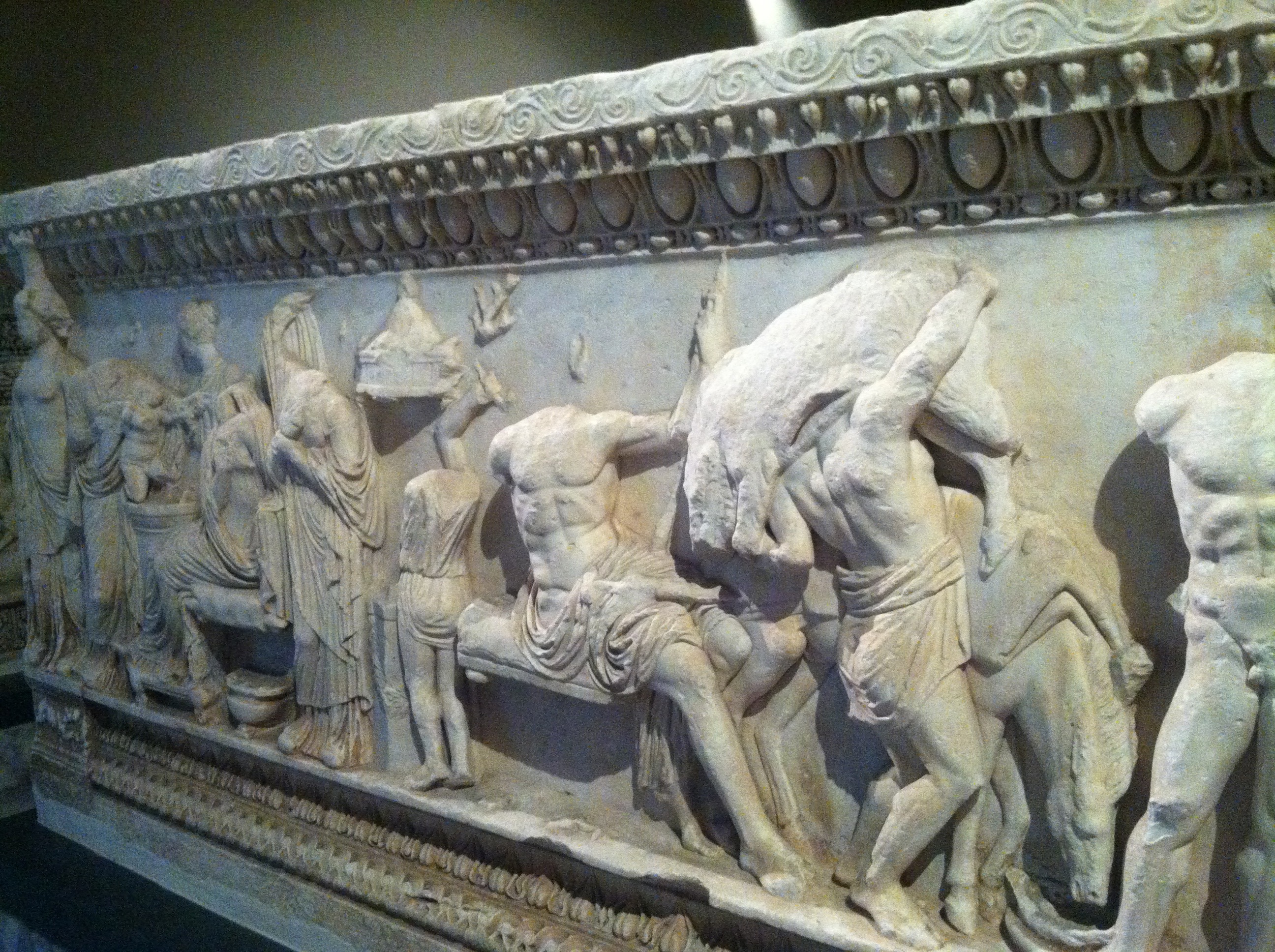 Sarcophagus tub with depiction of the myth of Phaedra and Hippolytus, Marble, Thessalonica, Roman Period, first half of 2nd century CE. Istanbul Archaeological Museum.
