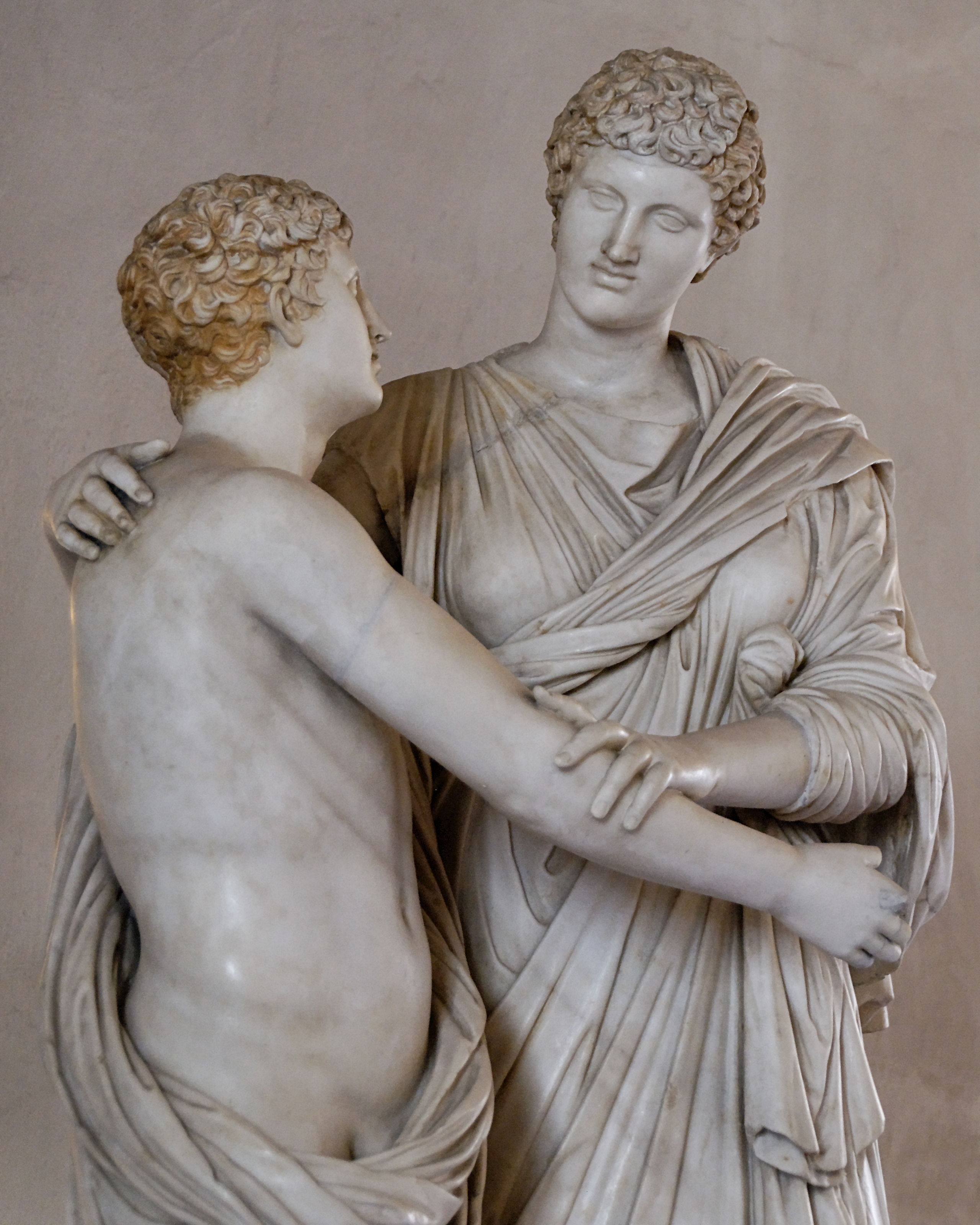 Menelaos: Orestes and Electra, Ludovisi Group, signed by Greek Sculptor Menelaos, the pupil of Stephanos, 1st Century BCE, restorations by Ippolito Buzi. Palazzo Altemps, RomePhoto: Marie-Lan Nguyen, Creative Commons Attribution 2.5 Generic license.via Wikimedia Commons