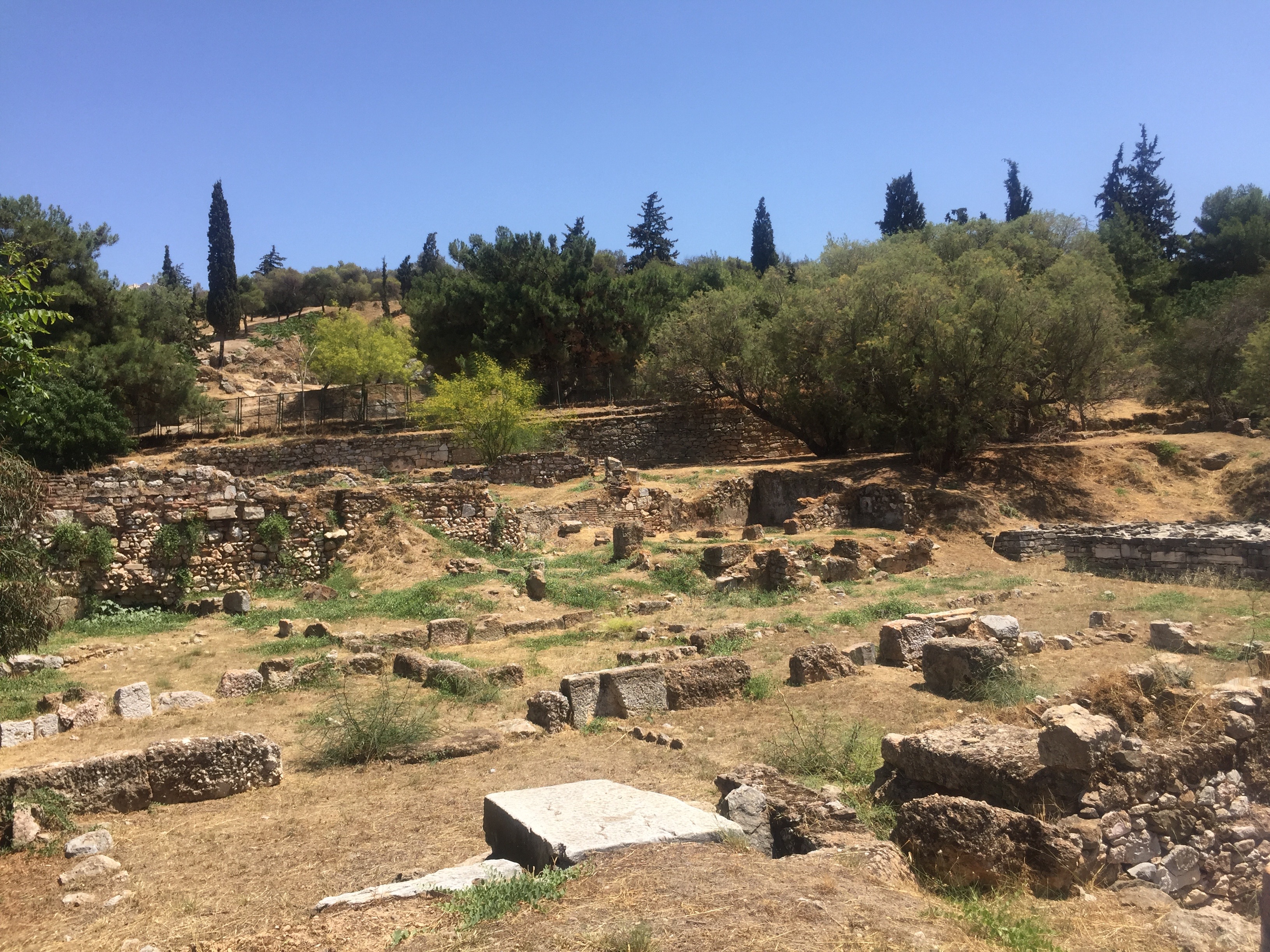 The Agora in Athens is one of the sites I visited as a part of the study-travel group in June 2016. The group was led by Gregory Nagy. Walking on the Panathenaic Way, seeing the Temple of Hephaistos, the water clock, the prison on the Marble-Workers Street and visiting the museum were some of the highlights for me. Agorā is part of our Core Vocabulary and Sarah Scott started a discussion on this thread. The word is glossed as ‘public assembly’ or ‘place of public assembly’. If you are a student of the ancient Greek language, agorā is probably one of the early vocabulary words you encounter and it is generally translated as ‘marketplace’. Translating agorā simply as marketplace does not capture the importance of this physical space. John McKessen Camp II has worked in the Athenian Agora since 1966, and has been the Director of Excavations there since 1994. He provides an inclusive explanation in The Athenian Agora.